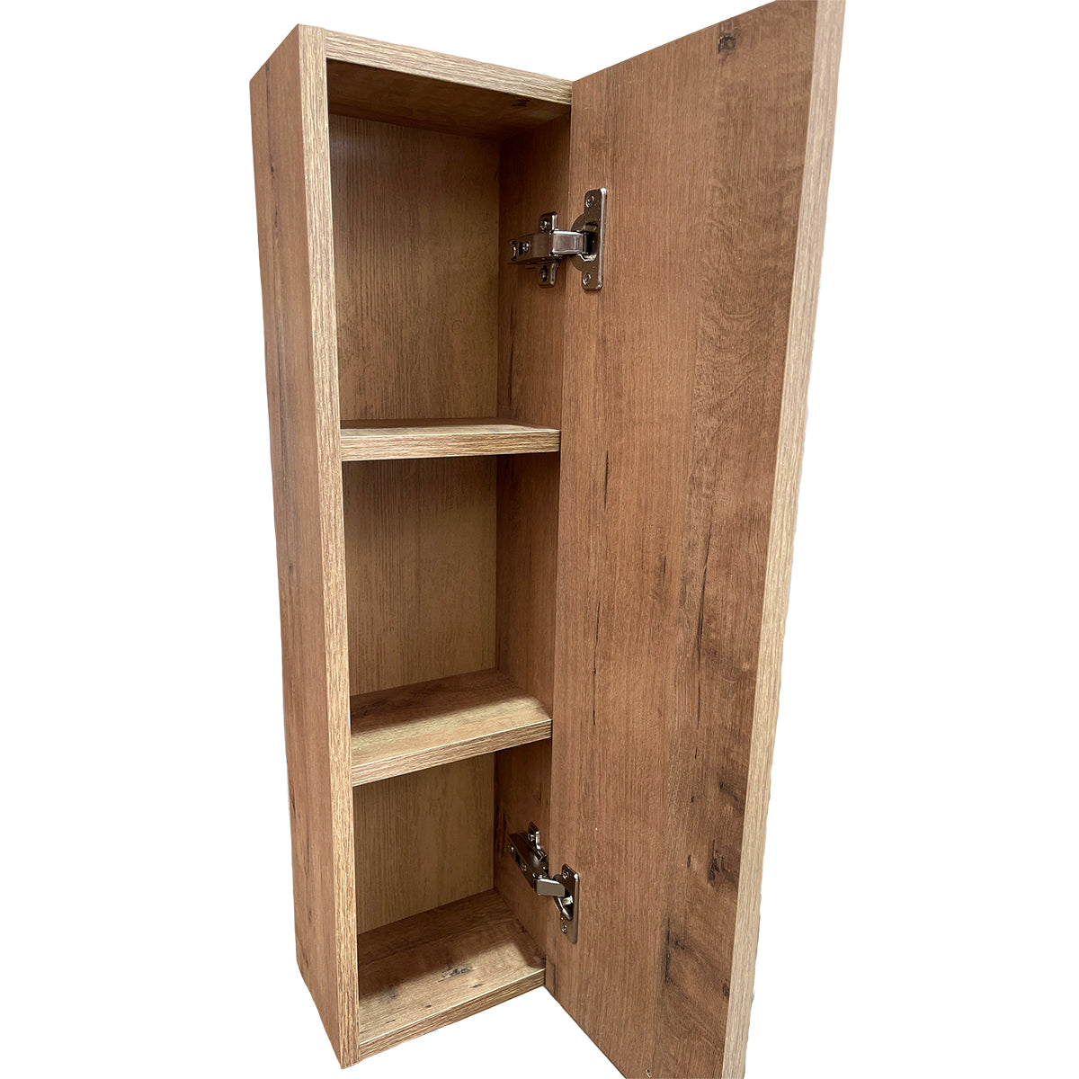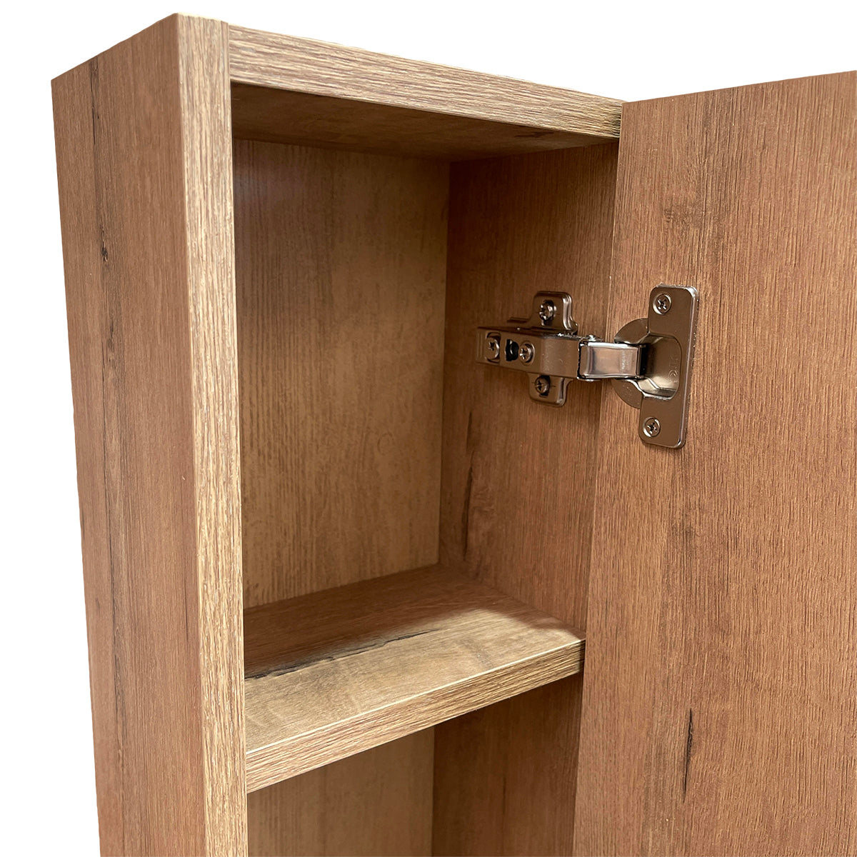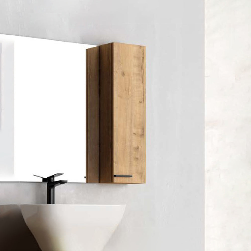 Es un mueble de colgar auxiliar de la serie MADISON de Bathme, diseñado para baños o zonas de aseo con espacio limitado. Ofrece almacenamiento para utensilios y productos cosméticos y de aseo personal, con acabado roble ostippo y cierre amortiguado para proteger el contenido.