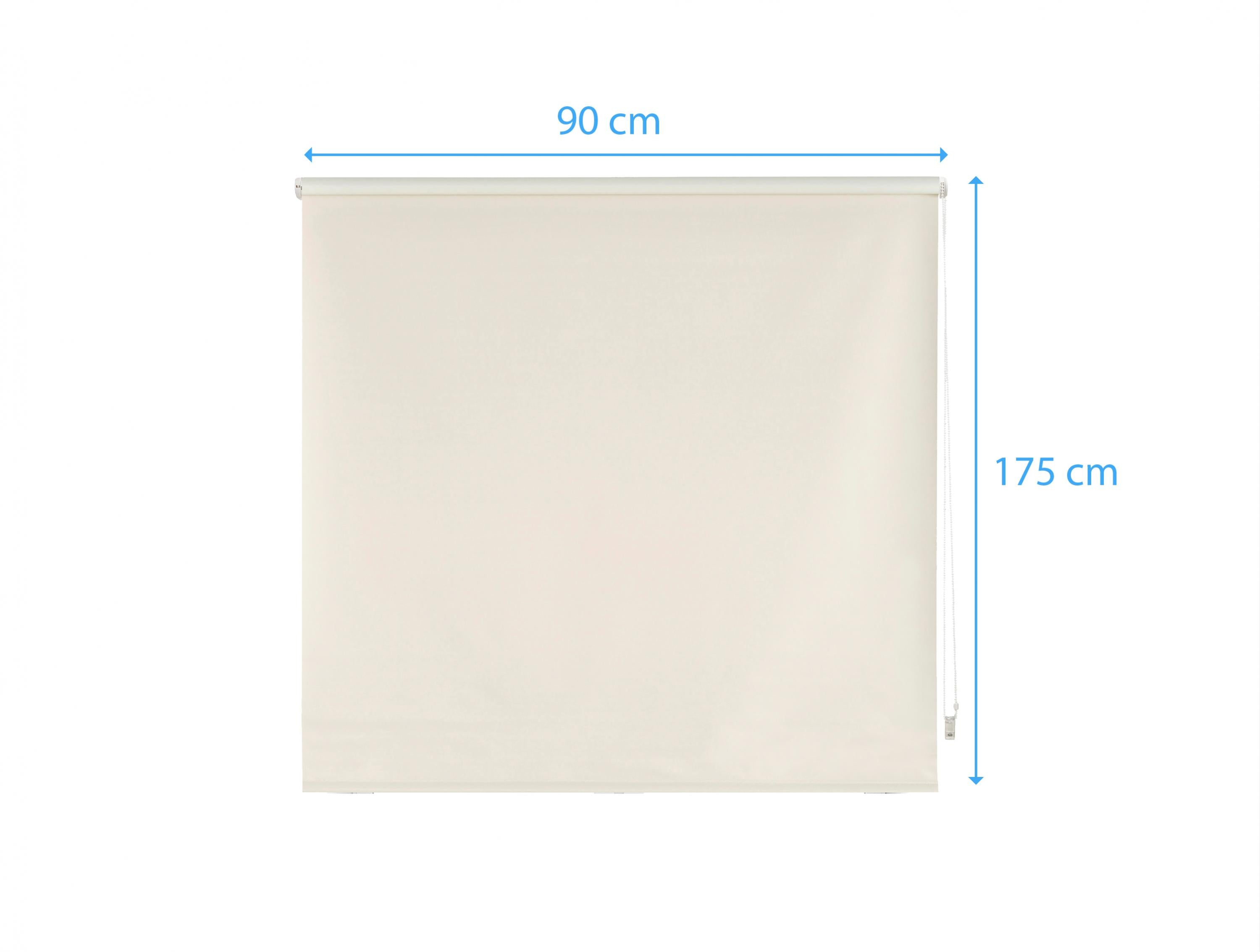 Estor enrollable beige de poliéster translúcido, pensado para salón, dormitorio u oficina. Regula la entrada de luz y ofrece privacidad, manteniendo un ambiente agradable gracias a su protección UV.